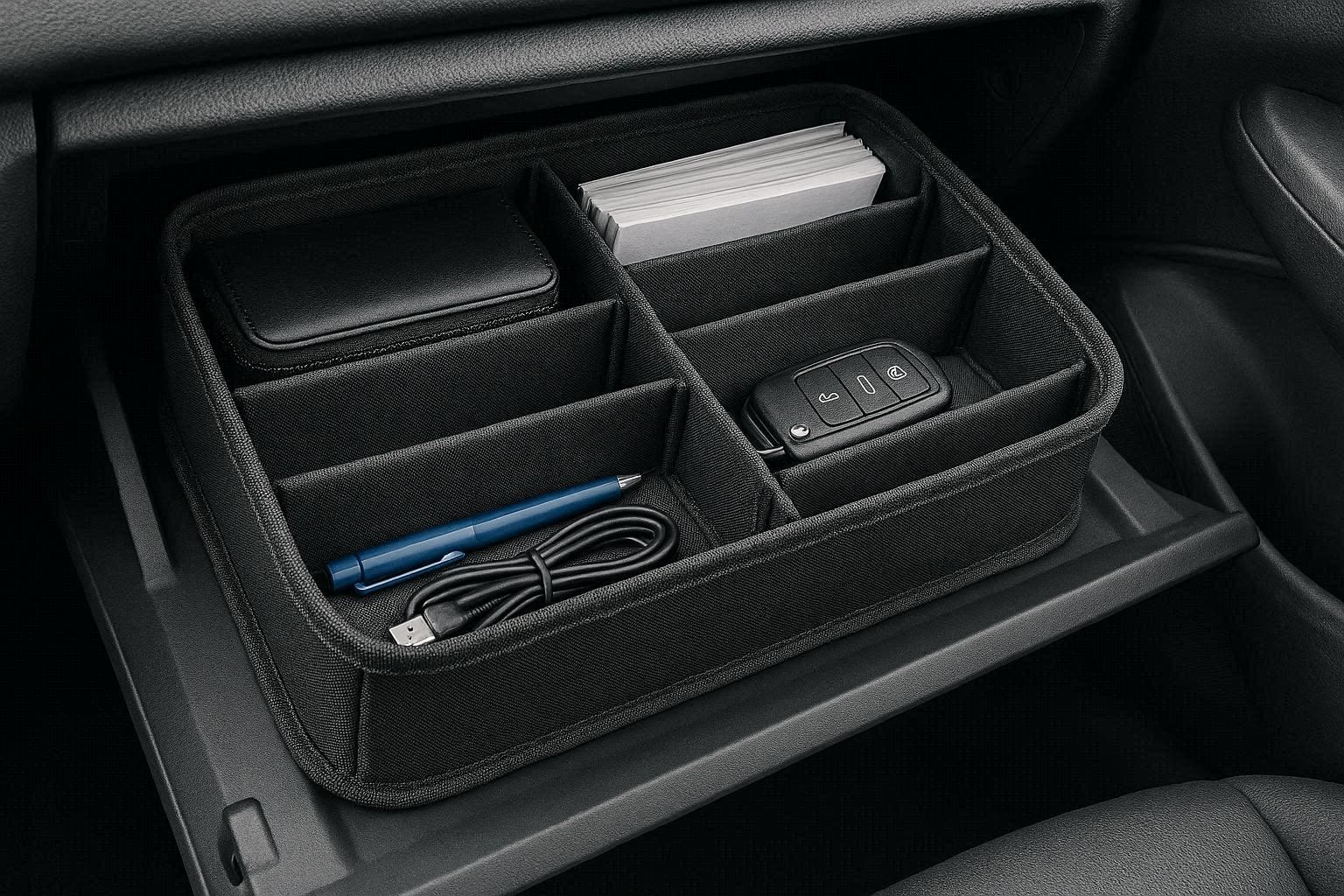 This organizer is a must-have for anyone who values order and wants to maximize the utility of their glove box. It saves time and reduces stress by ensuring important items are always easy to find. The customizable fit ensures a perfect installation, making your glove box not just a storage space, but a well-organized command center for your vehicle’s essentials.