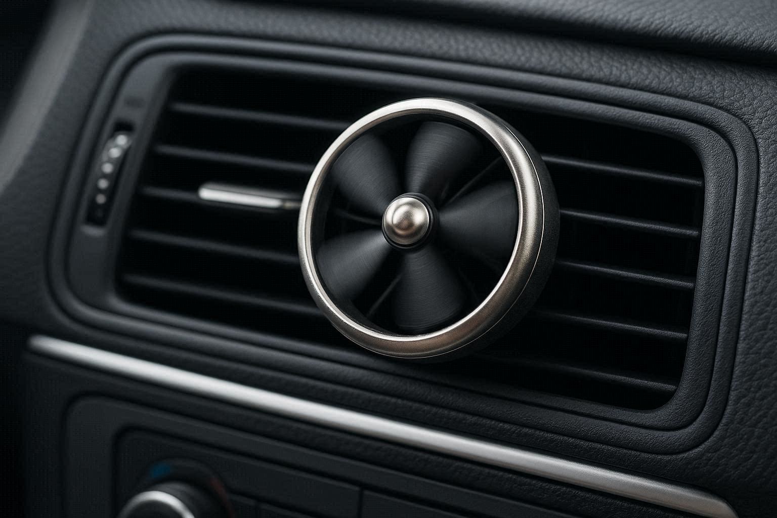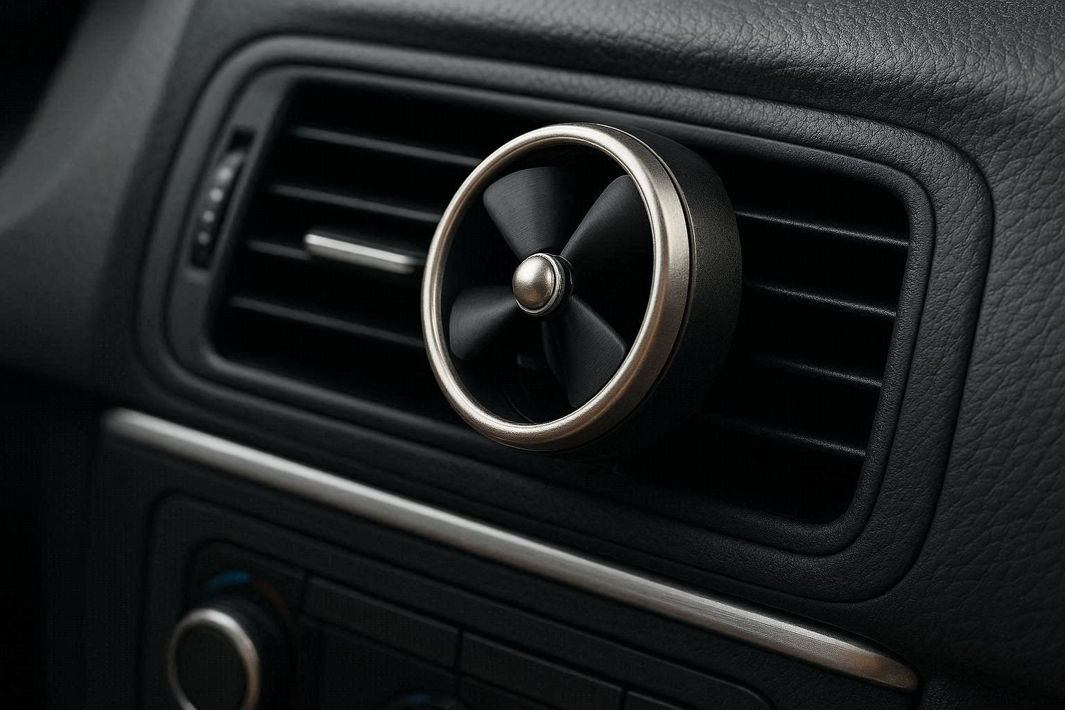 This innovative car freshener combines a vent clip with a miniature solar-powered fan to actively circulate fragrance. The fan spins when exposed to sunlight or car interior lights, distributing scent evenly throughout the cabin. The unit holds a standard 4ml fragrance cartridge.