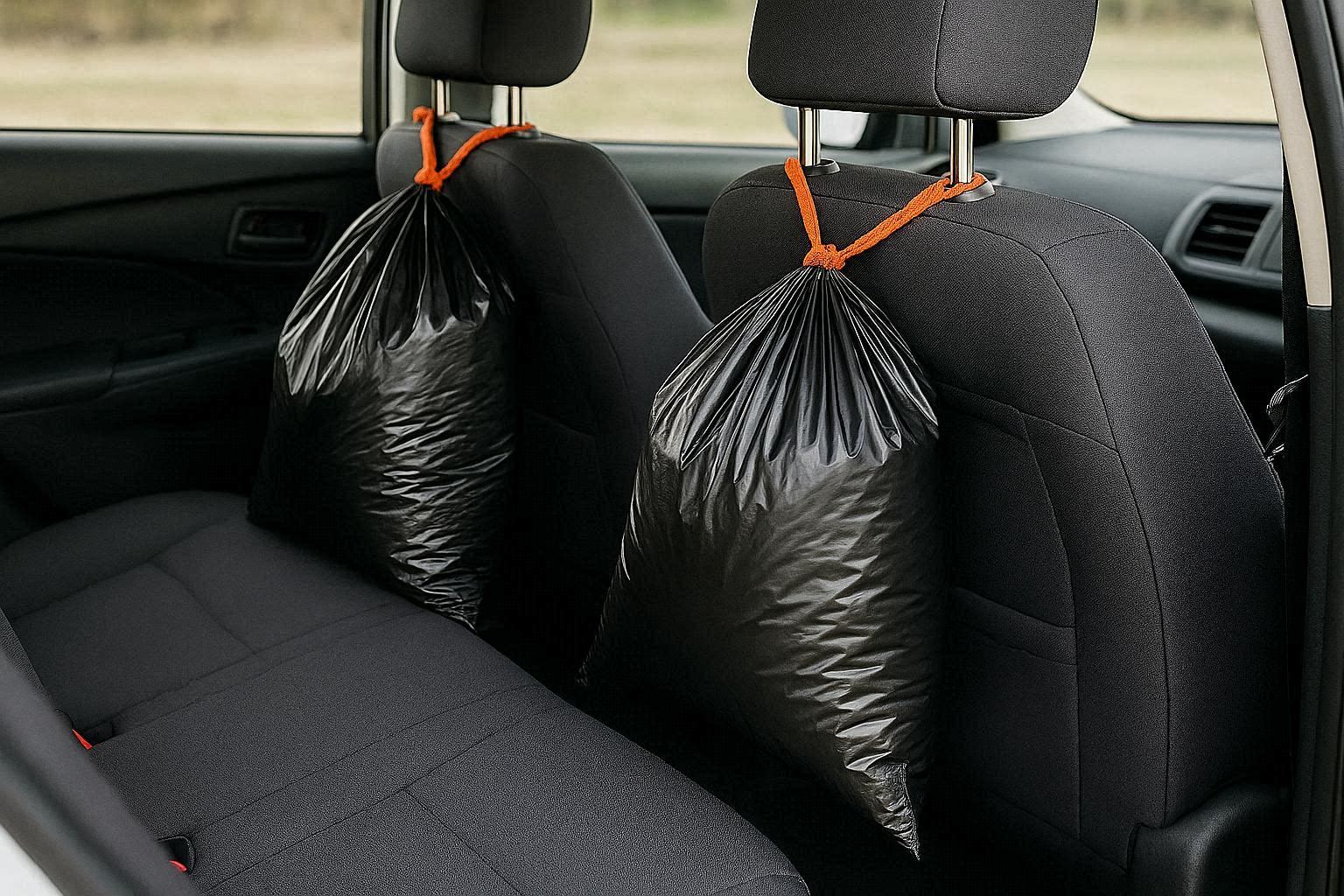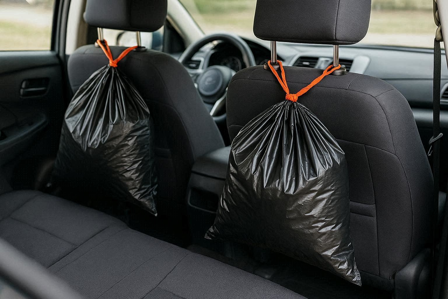 Leakproof Car Trash Bags with Adhesive Strips for Mess Free Rides